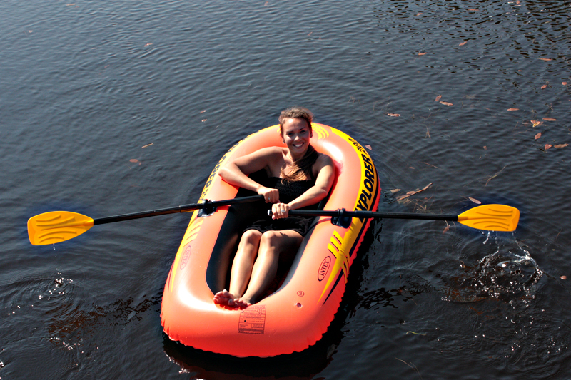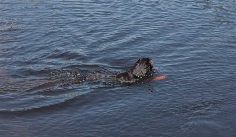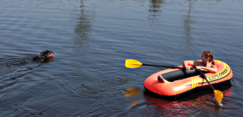 Ja ei kauan kestänyt, että mun luotettavat karvaiset kakarat oli vedessä menossa mukana. Tosin poika (aka Mitch) hermostu ihan täysin kun noustiin mieheni kanssa molemmat veneeseen. Raukka ui meidät joka kerta kiinni – tarrasi kiinni airoon ja hinasi meidät takasin rannalle.