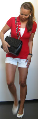 Ihanan raikkaalta näyttää valkoiset vaatteet ruskettunutta ihoa vasten. Punainen kruunaa pirteydellään. =) Minä olen kalpeista kintuistani huolimatta uskaltautunut hyppimään hameissa ja mekoissa pari päivää. Aurinkoa<3Harmi, että olen töissä ne päivät jolloin aurinko paistaa. =D