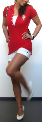 Ihanan raikkaalta näyttää valkoiset vaatteet ruskettunutta ihoa vasten. Punainen kruunaa pirteydellään. =) Minä olen kalpeista kintuistani huolimatta uskaltautunut hyppimään hameissa ja mekoissa pari päivää. Aurinkoa<3Harmi, että olen töissä ne päivät jolloin aurinko paistaa. =D