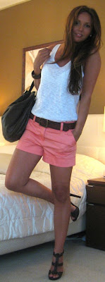 Onpas ihanan raikas asu. Shortsejen väri on tosi kiva ja sopii just sun rusketukseesi. Sopii todella hyvin sulle kyllä. Ja kengät kengät kengät… Aivan ihanat! Loistava blogi muutenkin:)