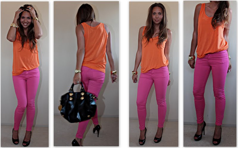 5.5.2011Jokin aika sitten ilmoitin tämän hetken lempiväriyhdistelmäni olevan sähkönsinen ja oranssi. Noh, nyt innostuin oranssin yhdistämisestä toiseen väriin – nimittäin hot pinkkiin. Inspistä sain hieman näistä Chictopian kuvista: