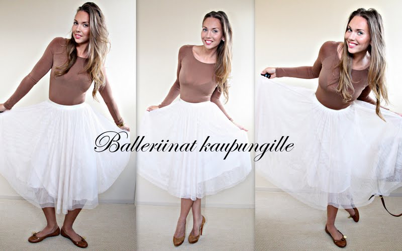 Aivan ihana asu! :) Vähän arvelinkin, että se olisi se balettihame, mikä ostoskassiin eksyisi! Näyttää todella hyvältä! Voi kun tahtoisin myös, mutta olen niin lyhyt että hukkuisin tuohon hameeseen… Ehkä vain jään ihastelemaan sitä muiden päällä. Ja baletista on pakko sanoa; itse kävin pari vuotta epäsäännöllisen säännöllisesti, yleensä kerran viikossa ohjatulla balletone-tunnilla. Kyseessä siis balettia, pilatesta ja tiukkaa lihaskuntoa yhdistelevä liikuntamuoto, josta itse tykkäsin aivan älyttömästi :) Koreografisesti "challenged" persoonana myös liikesarjat oli tarpeeksi helppoja, mutta kuitenkin tuli aina todella ylväs ja kaunis olo kuin siellä "Liiteli" ja ojenteli nilkkoja ja käsiä :D Suosittelen! Kuntokeskuksista löytyy ainakin Suomesta Elixiasta ja Finnbodystä, ja Suomen-vierailulla voi varmasti järjestää esittelykäynnin tunnille! :)