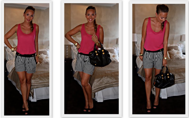 3.7.2011Tällaista oli päällä tässä muutama päivä sitten kun kaupungilla pyörittiin ystäväpariskunnan kanssa. Tosin ympäri Helsingin keskustaa mukulakivillä pyöriessä oli mustat balleriinat päällä – jotta varmasti jaksoi käydä perusteellisesti läpi ne kauan odotetut Zaran alet…;) Aleista puheen ollen, tämän asun shortsit on ostettu joksus Vilan aleista 5 eurolla. Raita kun pysyy muodissa vuodesta toiseen ja klassisuutensa ansiosta ei myöskään kyllästytä vuosienkaan päästä.