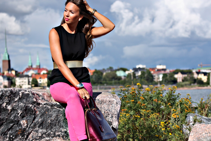 14.8.2011Nämä kirkkaan vaaleanpunaiset ovat olleet ehdottomasti yksiä lemppareitani kuluneella sesongilla. Värikkään trendin pyörteissä nämäkin silmään pistävät housut tuntuvat sopivan kaiken kanssa. Että olen tyytyväinen, että päätin olla heti alkukeväästä rohkea ja ostin nämä housut! Näitä on todella tullut käytettyä koko hinnan edestä. Helsingissä olen nähnyt samanlaisia housuja paljon muiden nuorten naisten yllä, ja täytyy sanoa, että ovat joka kerta tuoneet pirteydellään hymyn minun huulilleni.