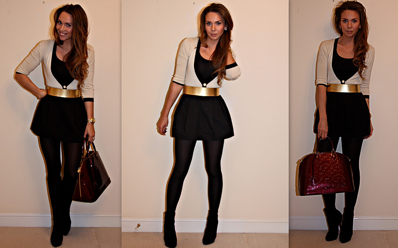 black top: Gina Tricot, cardigan: Asos, skirt: H&M, belt: H&M, pantyhose: Wolford, shoes: Christian Louboutin, bag: LV