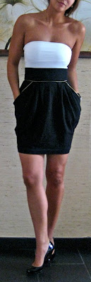 Tuubitoppi ehdottomasti :)Just ostin aika samanlaisen asun, valkoinen tuubitoppi ja sit samanmallinen tummansininen hame kultasilla napeilla :D