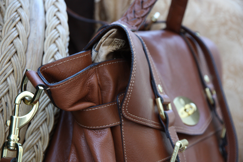 Ah. Tämä laukku on todella tyylikäs, helppo kantaa (kiitos olkahihnan säätömahdollisuuden) ja on ihan käsittämättömän tilava! Laukun sisällä kulki Suomesta lentäessä MacBook, iso lompakkoni, kalenteri, korkokengät, passi, iPod, kännykät sekä avaimet. En ole ennen omistanut oikeastaan mitään konjakin väristä, mutta kylläpä nyt olen ihastunut tähän perusväriin!