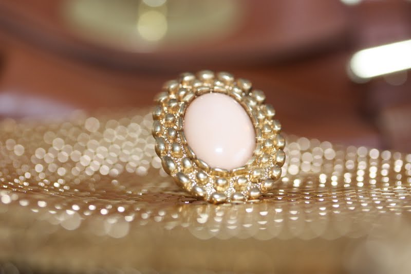 Mun äidillä on samankaltainen kultainen laukku, tosin jostain ihan vaateliikkeestä ostettu. :D Oon monesti hiplaillut sitä, mutten ole hennonut nyysiä sitä kun äidillä on muutenkin niin paljon vähemmän laukkuja kun mulla. :) Sormus näyttää myös oikein kivalta ja mulla olisi yksi jakku, jonka kanssa se olisi täydellinen. ;) Pussukka on myös oikein soma! <3