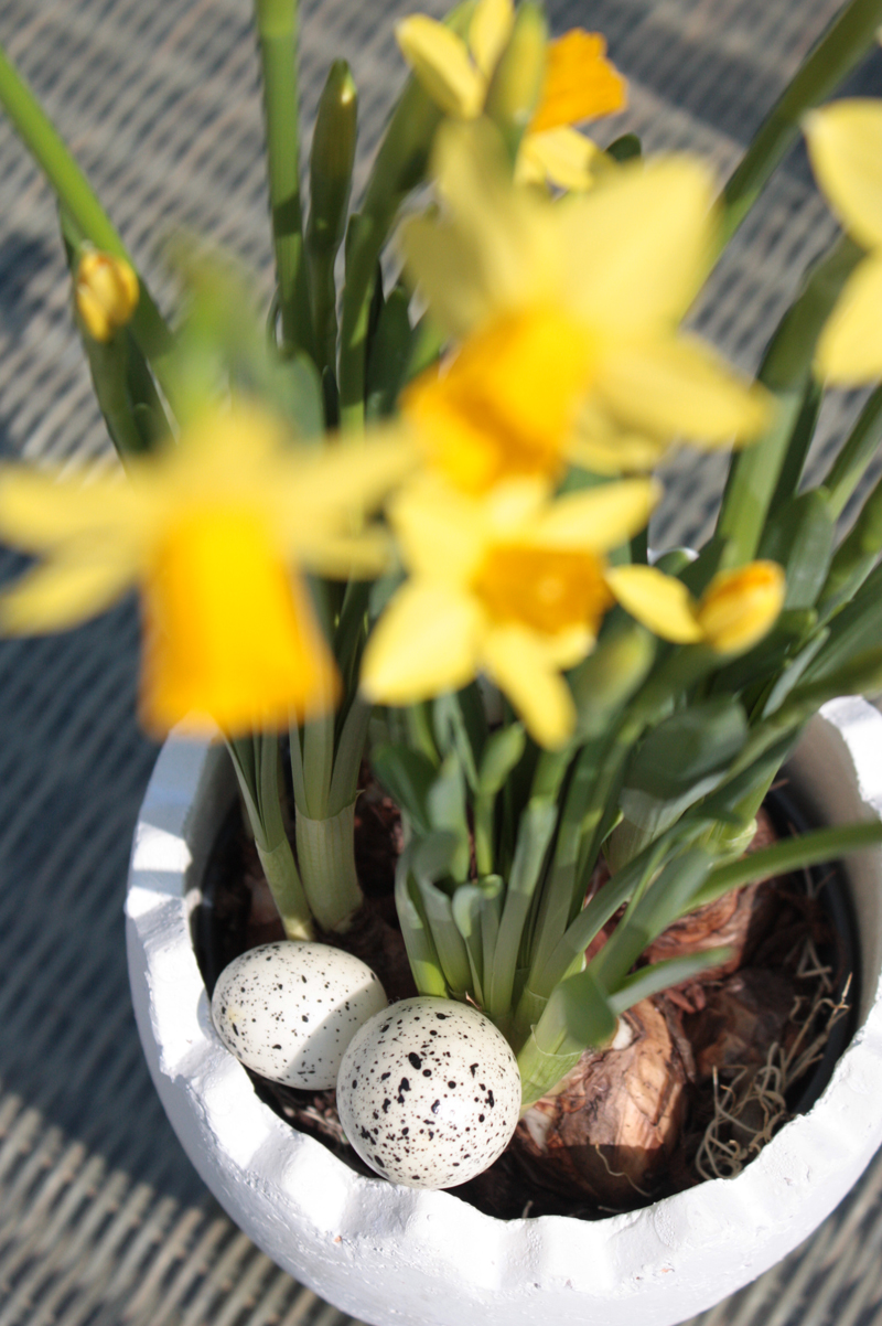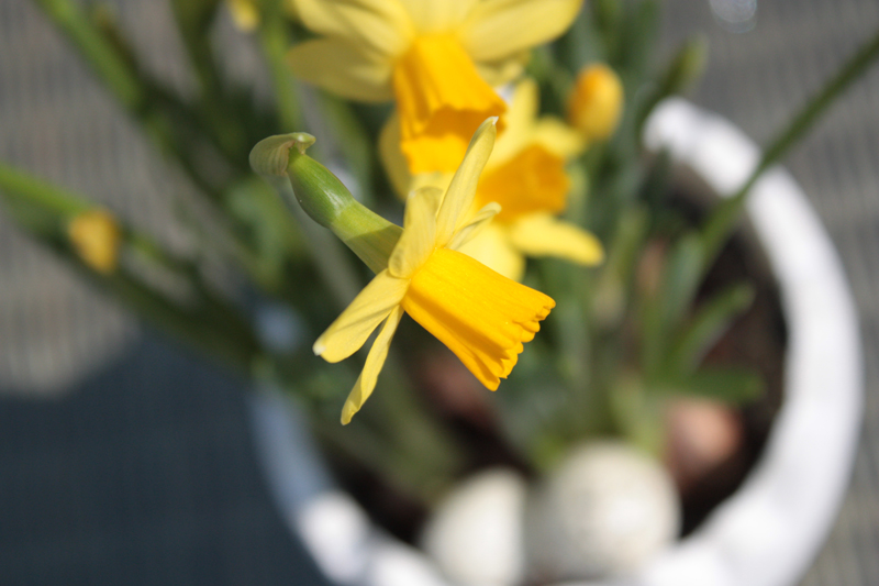 Ihanilta ystäviltämme saimme kauniin kukkaruukun kukkineen juhlistamaan pääsiäistä. Nämä kuvat ovatkin otetttu hieman hieman myöhemmin aamulla, milloin takapiha pääsee enemmän oikeuksiinsa auringon paisteessa.