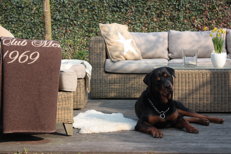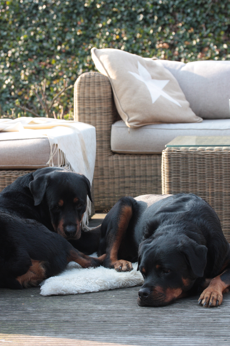 Kaikki tyynyt ovat irrotettavia, joten sateen sattuessa kiikutamme ne sisään kulman takana olevaan autotalliin. Kaiken kukkuraksi tyynyjen päälliset saa irti, joten peseminen on helppoa.