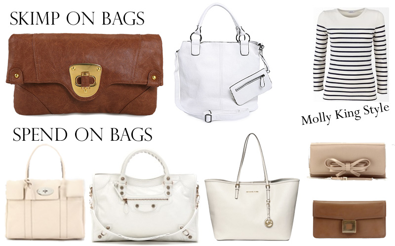 Molly Kingin käsissä roikkui kaikissa kuvissa joko raikas valkoinen tilavempi käsilaukku, tai tyylikäs Marc by Marc Jacobsin ruskea clutch.
