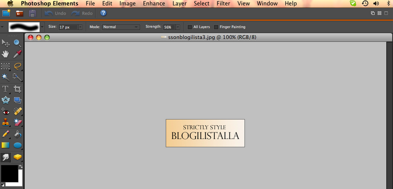 Ensiksi sinun tulee tehdä kuvat, joita haluat linkityksessä käyttää. Jos et tahdo valmista kuvaa koneeltasi, joudut käyttämään kuvankäsittelyohjelmaa niiden tekemiseen. Minä itse käytin tähän PhotoShoppia. Yksinkertaisesti loin 200px X 70 px kokoisen uuden tiedoston (file – new file – blank file), josta sitten muokkasin taustani haluamalla värillä ja kirjoitin lopuksi siihen samaisella ohjelmalla haluamani tekstin: Strictly Style on facebook. Muista tallentaa kuvasi.