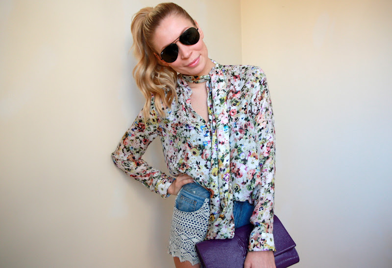 Tykkään pukeutua rennon tyylikkäästi. Rakastan kyllä kaikkea tyttömäistä, mutta asukokonaisuuksiin yhdistän aina jotain tyyliä rikkovaa ja särmikästä. Käytän paljon printtipaitoja nahkatakkien kanssa ja jos minulla on naisellinen paita vastapainotan sitä esimerkiksi rikotuilla ja revityillä farkuilla. Yhdistelen usein myös erilaisia printtikuoseja keskenään ja sekoitan värejä rohkeasti. Tämä asukokonaisuus on minulle jopa erikoisen naisellinen, mutta siskoni kukkapusero valloitti minut täysin. Jos lähtisin asussa kaupungille lisäisin varmasti vielä enemmän isoja sormuksia ja avaisin hiukset huolettomamman lookin saamiseksi.