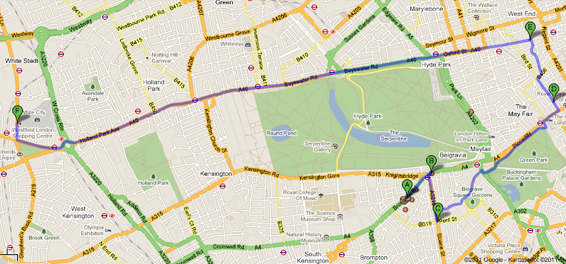 11.4.2011Old Bond Streetiä pitkin kävelimme toisena päivänä kun olimme käyneet katsastamassa must see nähtävyydet kuten Buckingham Palacen ja (minun mielestäni kyseenalaisen) Piccadilly Circuksen päiväsaikaan, joka kuulema on paljon näyttävempi illalla valoineen.