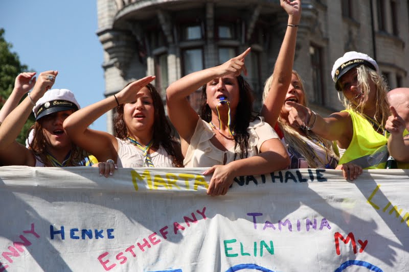 Samaisena päivänä koululaiset juhlivat koulujen päättäjäisiä suomalaisille tutulla penkkari-meiningeillä.