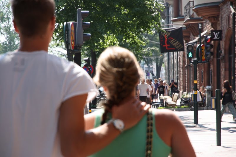 Auringon laskiessa suunnattiin Strandbryggan kahvilaan meren rannalla. Oli muuten aivan loistava paikka viettää iltaa näinkin kauniilla ilmalla. Joka puolella oli äärimmäisen hyvin pukeutunutta kansaa ja pienet ateriat olivat maukaita!